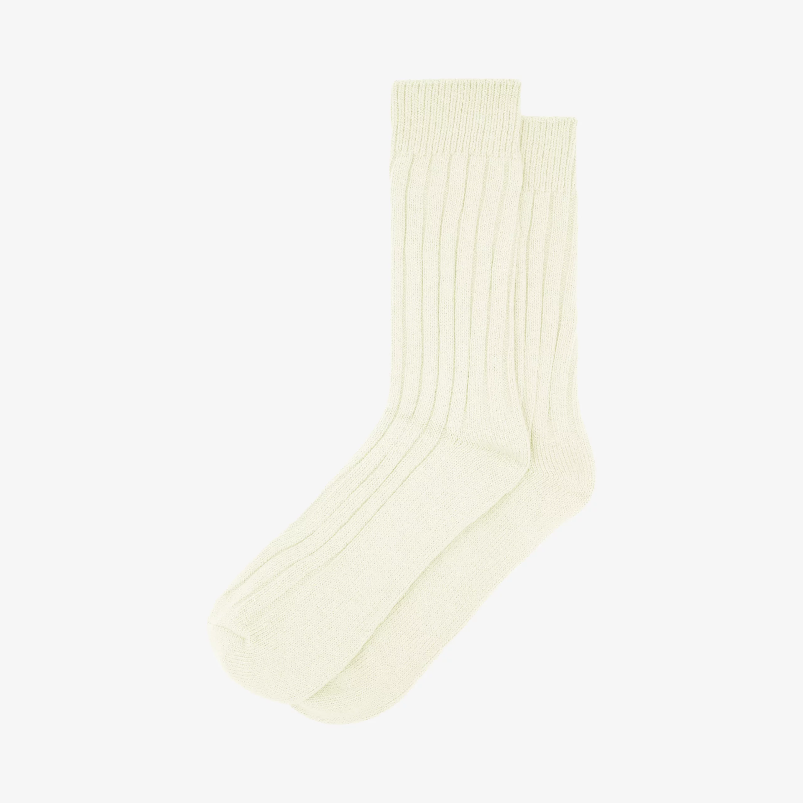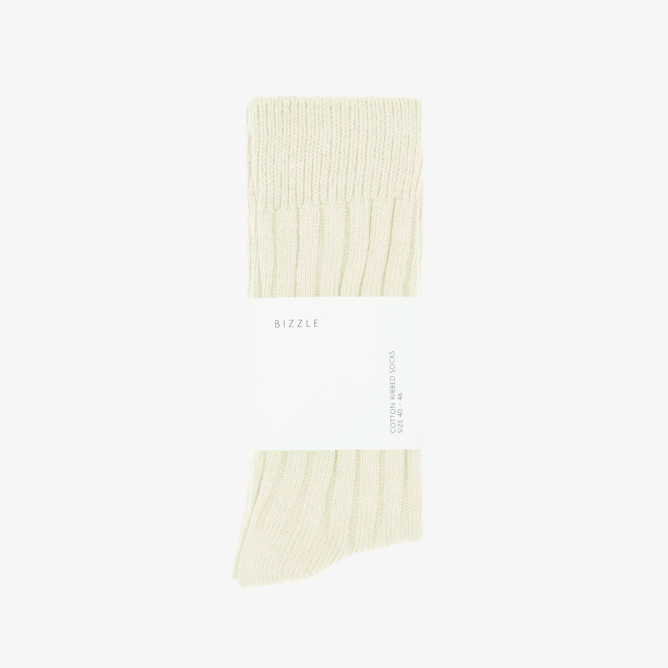 Bizzle ribbed socks cream. Sizing to fit 40-46 EU. Universal classic for every season. No visible brand logo. Manufactured in China following premium standards. MATERIAL: 85/cotton, 13/polyester, 2/spandex. Designed by BIZZLE.